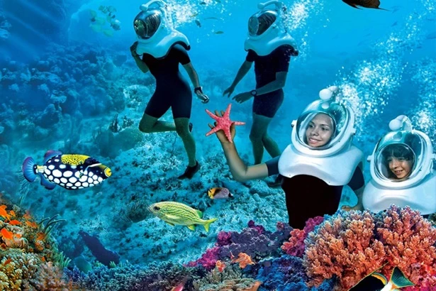 Sea walking offers you an opportunity to walk the ocean floor with a specially made helmet that keeps your head dry. You are attached to a support boat and led along so there is no need for swimming or diving.
